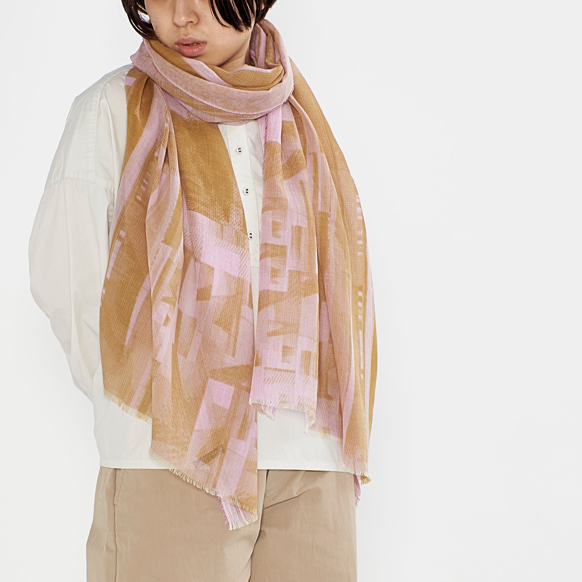 織物としての絣の魅力と、現代のプリント技術とが融合することで、これまでにない新たな絣が誕生しました。柔らかな質感と深みのある柄が、日常の装いにさりげなく日本の美を添えてくれます。