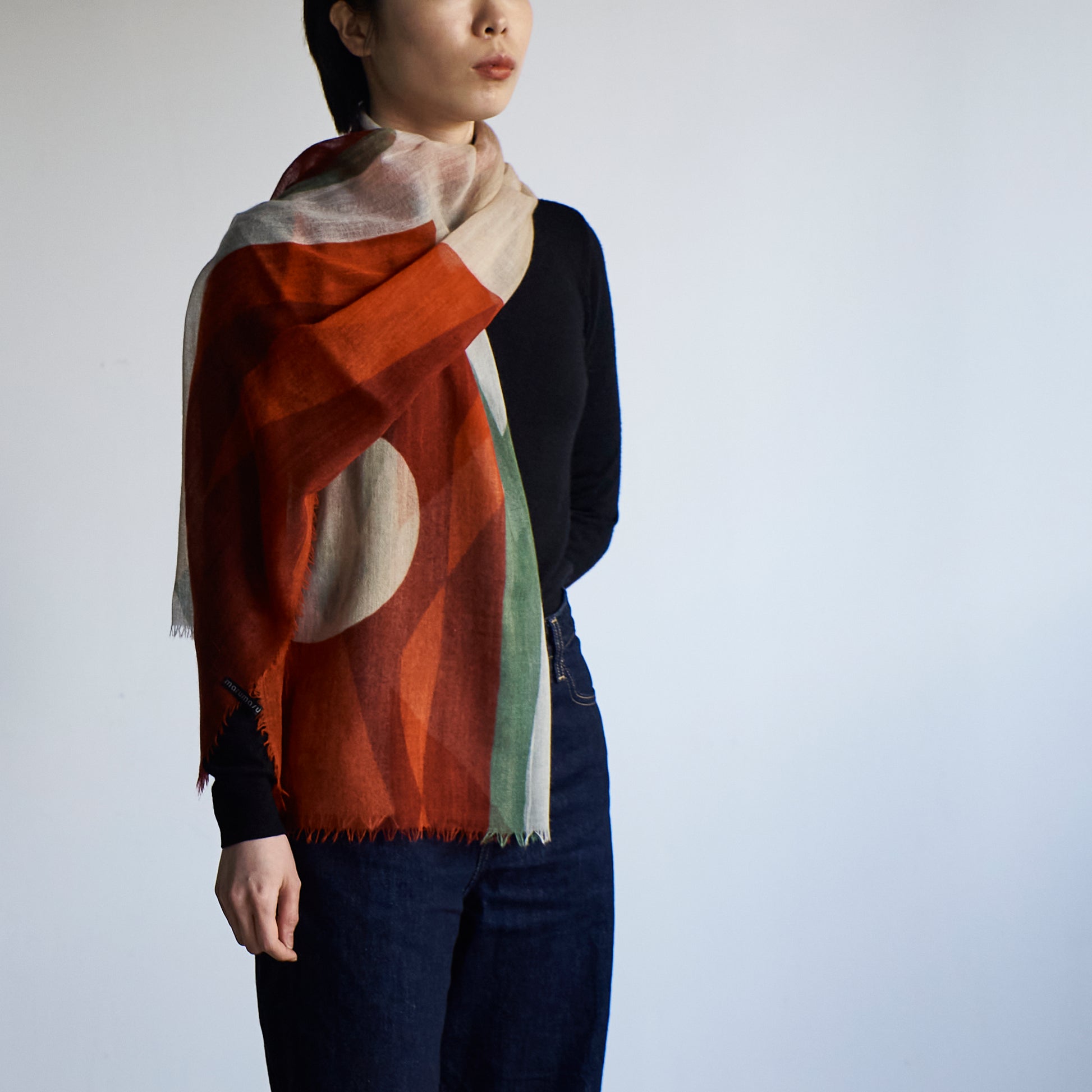 巻くだけでなく、羽織るとよりフォーマルなスタイルにもご使用できます。