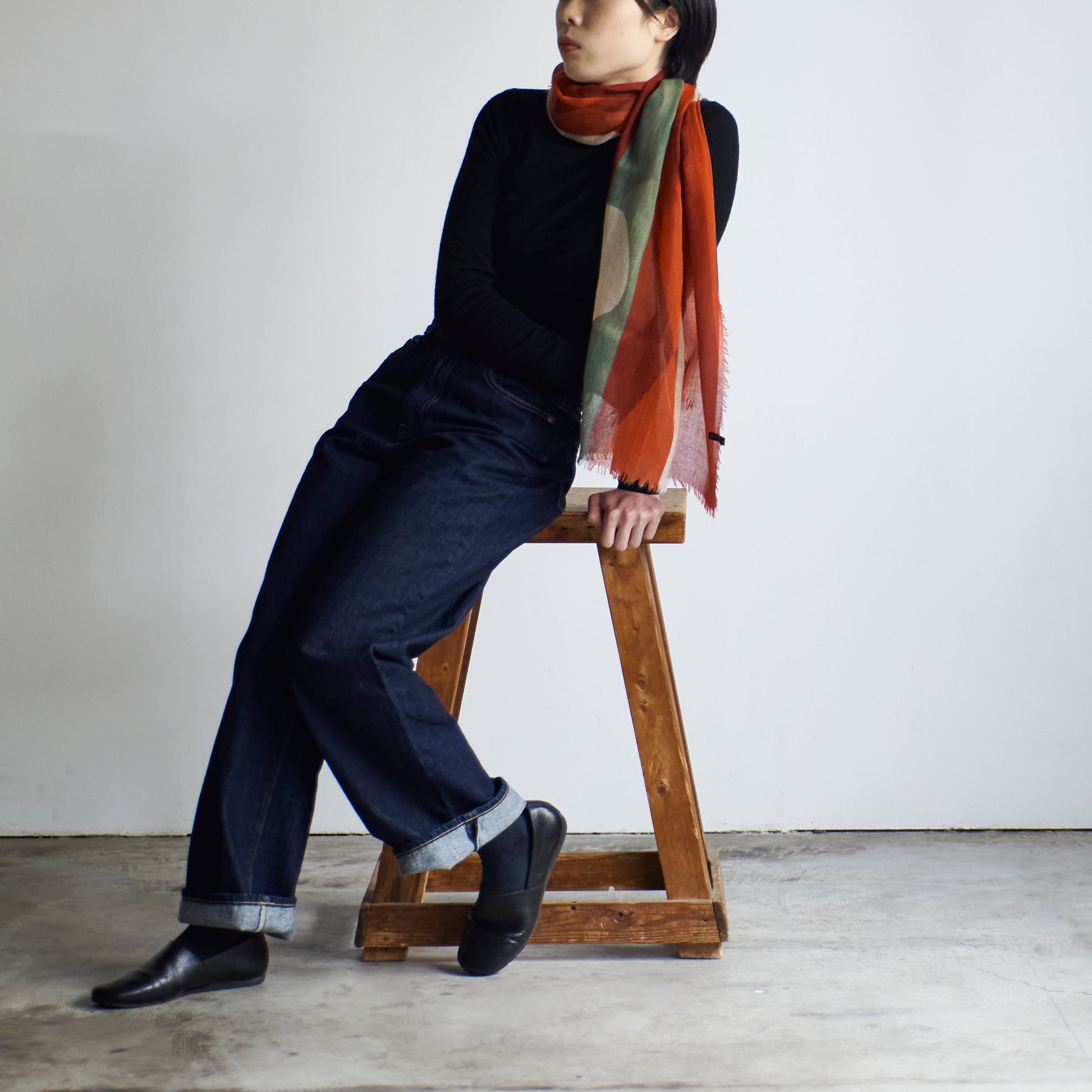 冬のイメージが強いですが、薄手のカシミヤガーゼは一日の中で寒暖差が激しい春、秋にもおすすめです。薄手のコートに衣替えしたけれど、朝晩は少し肌寒い、そんなときにも、寒さの対策も出来る頼れるストールです。