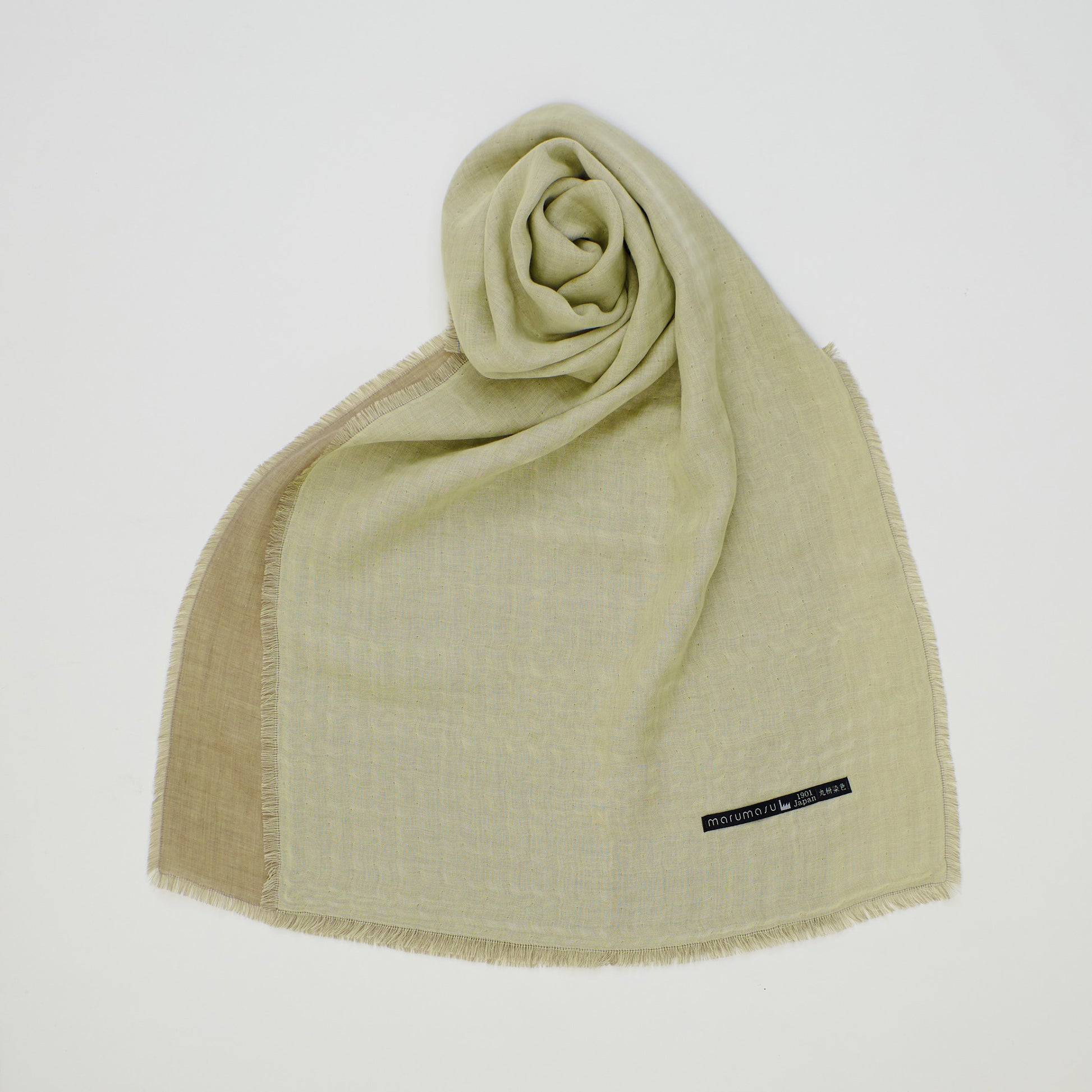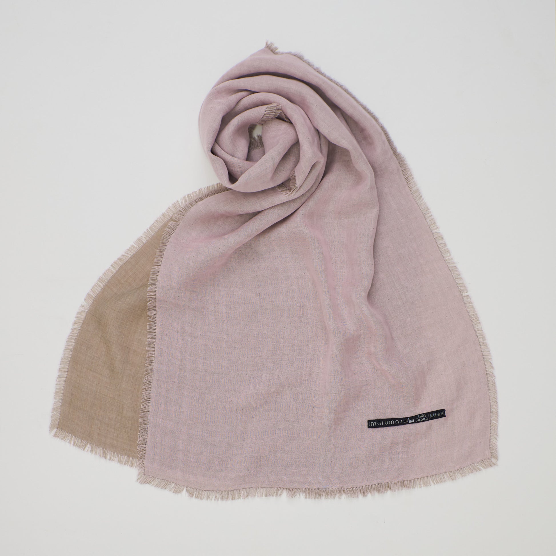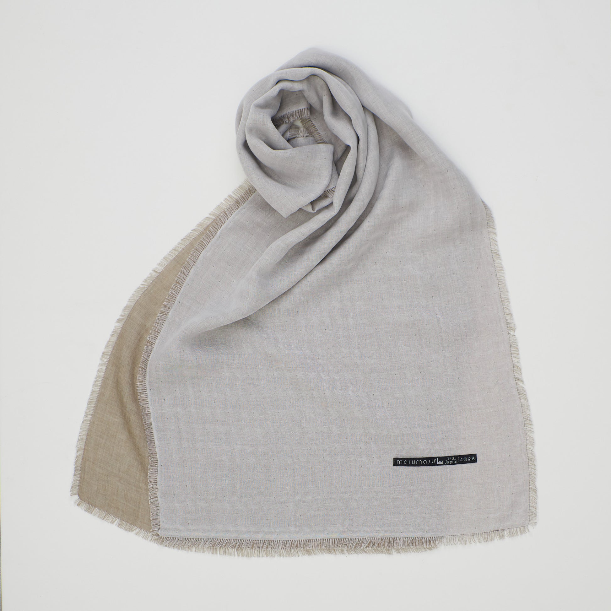しっとりとした質感で首当り良く、素晴らしく軽い。2重ガーゼの間に程良く空気の層を含む構造で温度調整機能にも最適です。リバーシブル仕様のため1枚のストールで表と裏で2色の無地を楽しめます。