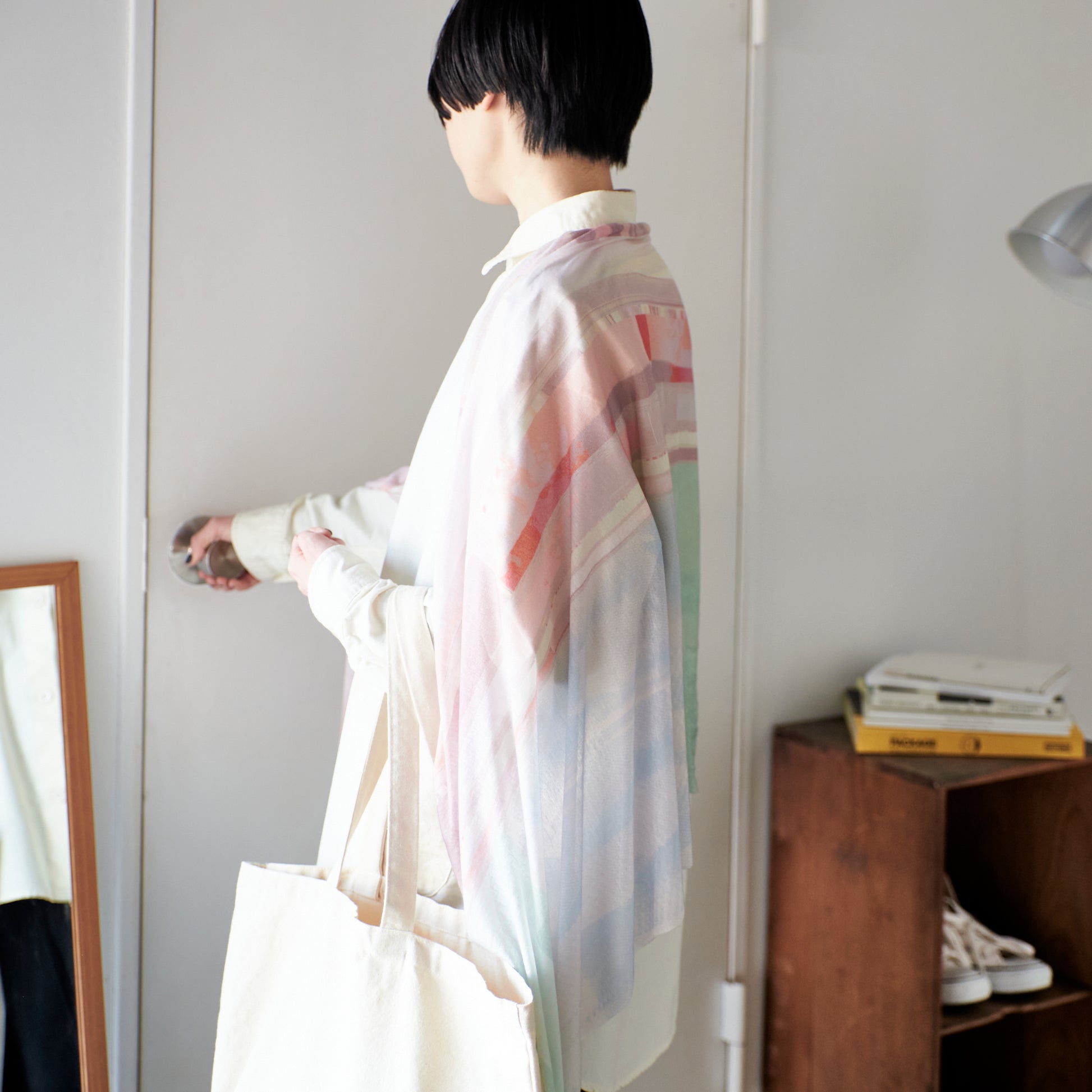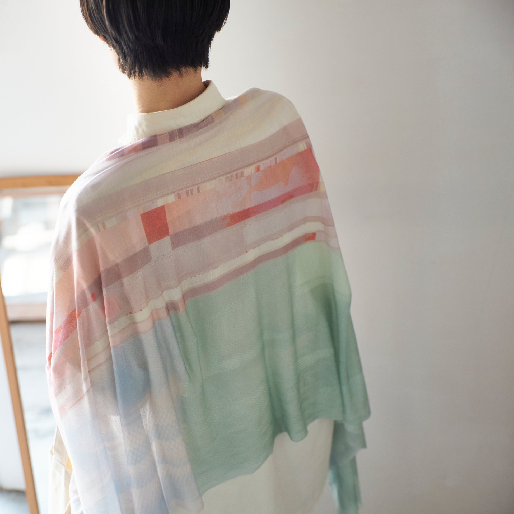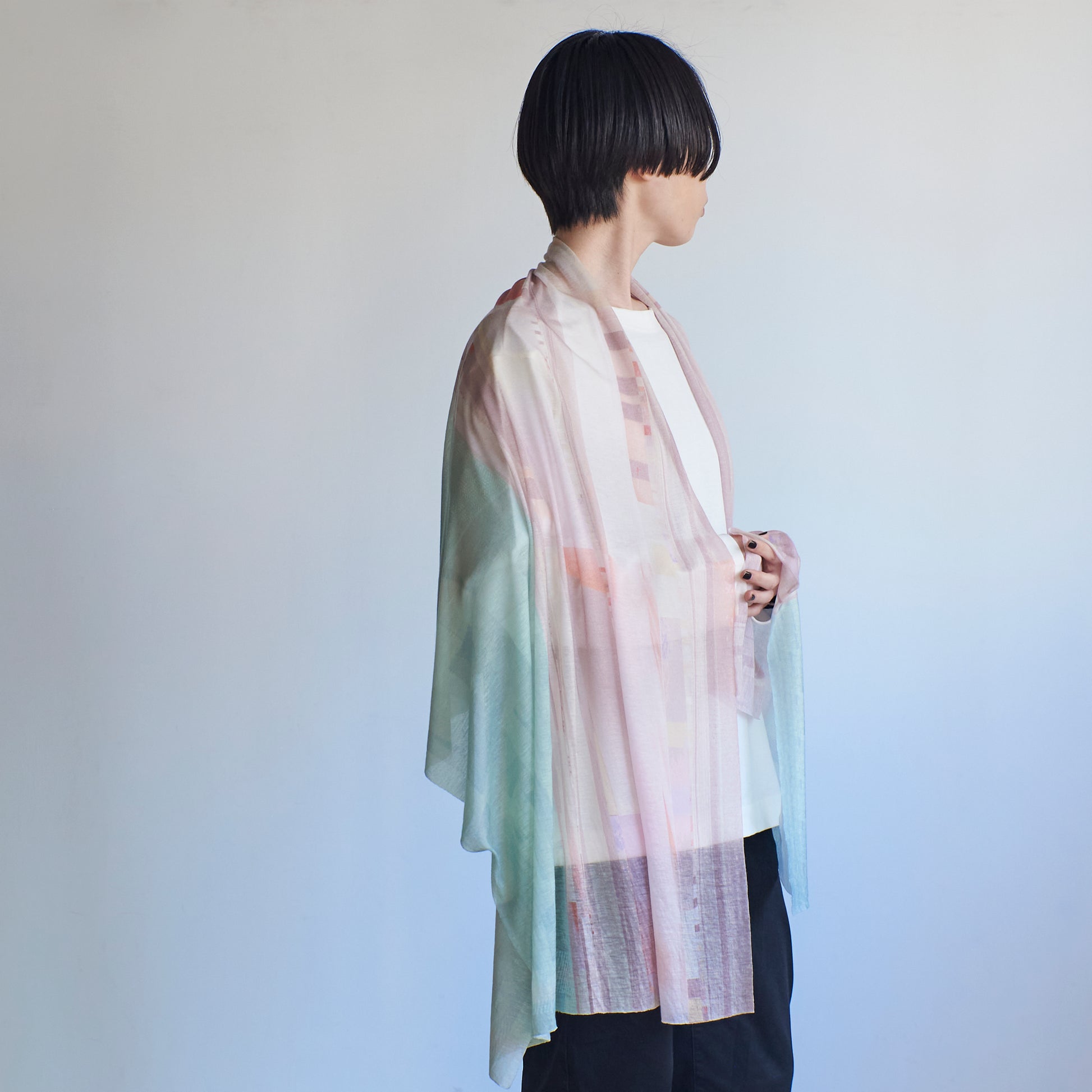 シワも気にならず、アクセサリー感覚で身につけられる使い勝手のいい1枚です。初夏の日差しに負けず、お出掛けした先で逃げ込んだ、冷房の効いた部屋の寒暖差にも重宝します。いつものコーディネ―トのさりげないアクセントに。ギフトにもおすすめです。