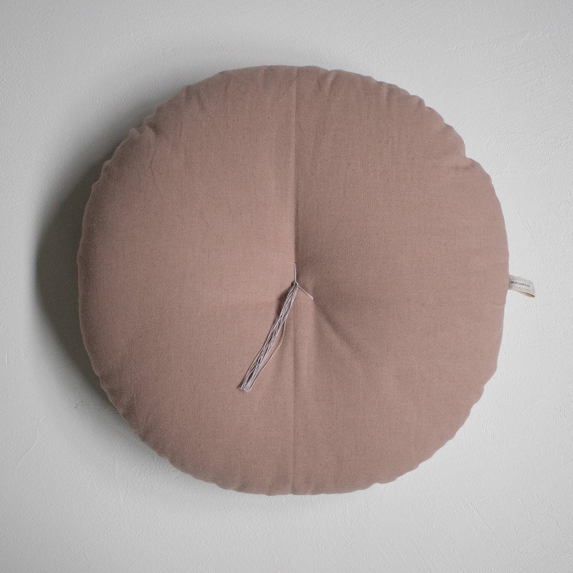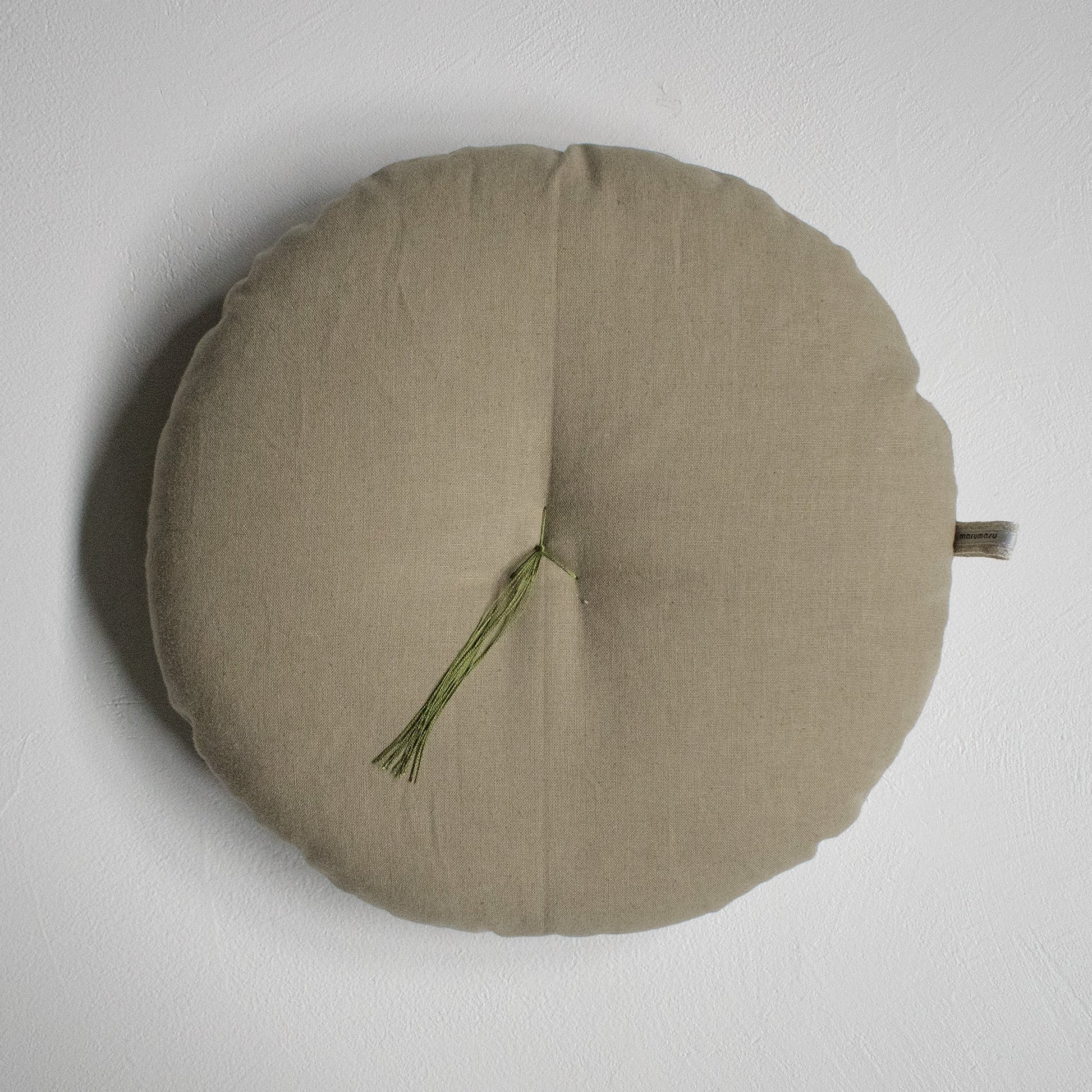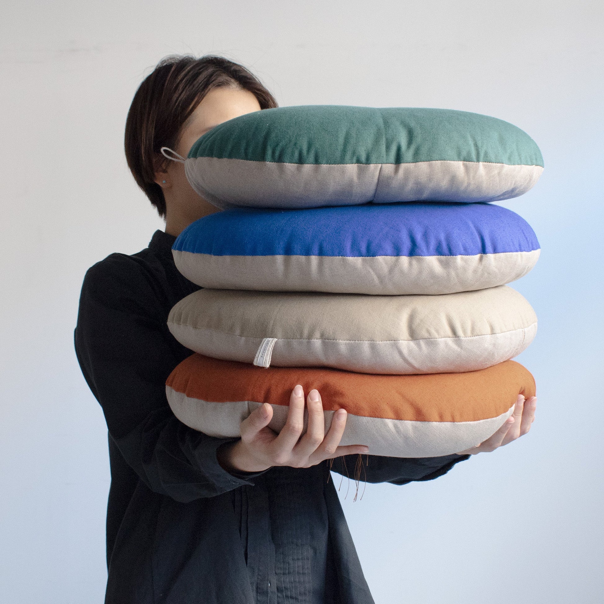円形45cmサイズはリビングのリラックス時間にぴったり。洋風のスタイリングにも馴染みやすく、程よい大きさなので、クッションや昼寝の枕としてもお勧めです。