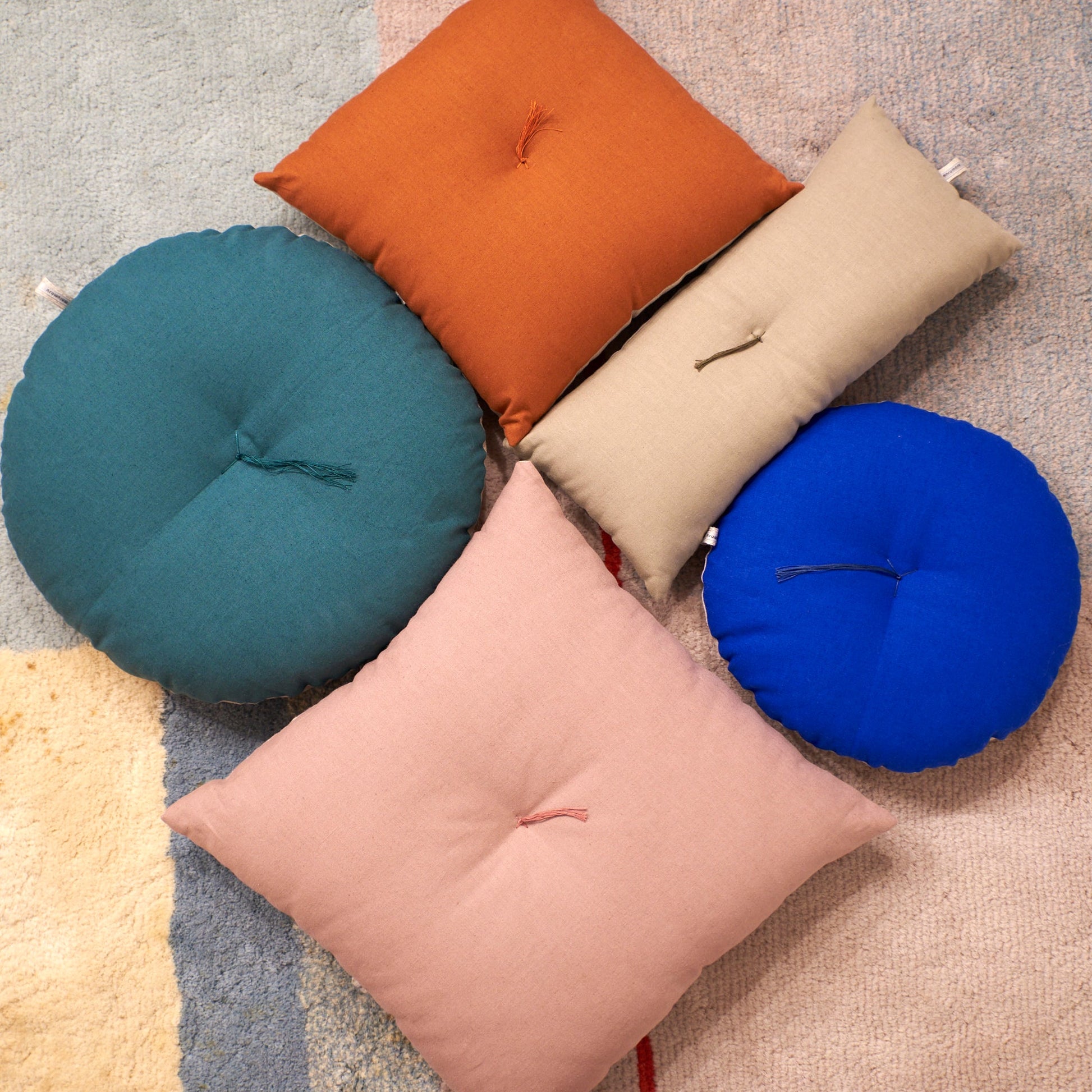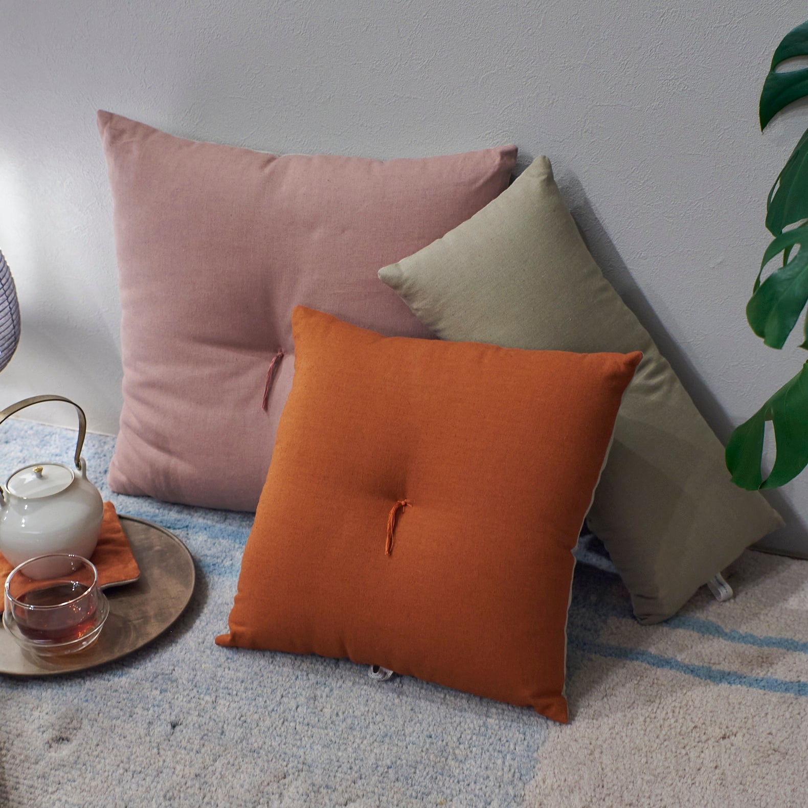 ZABUTON-CUSHIONは、日本で古来から続く伝統的な綿座布団を、現代の生活スタイルに合わせてリデザインしました。