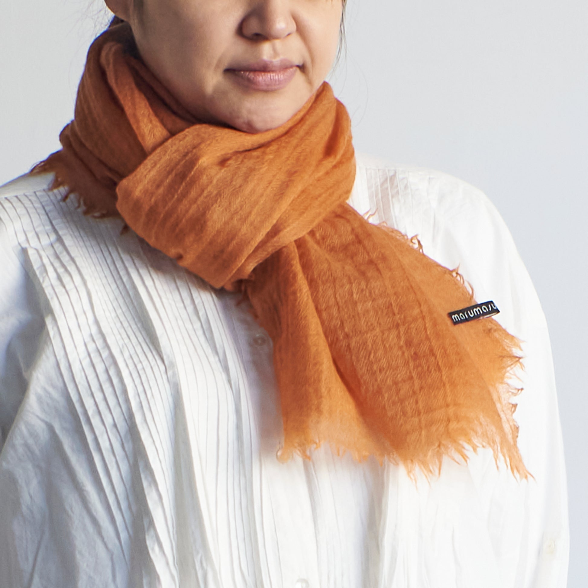 巻くと驚くほど軽く、薄いのに温かいカシミヤガーゼストール。