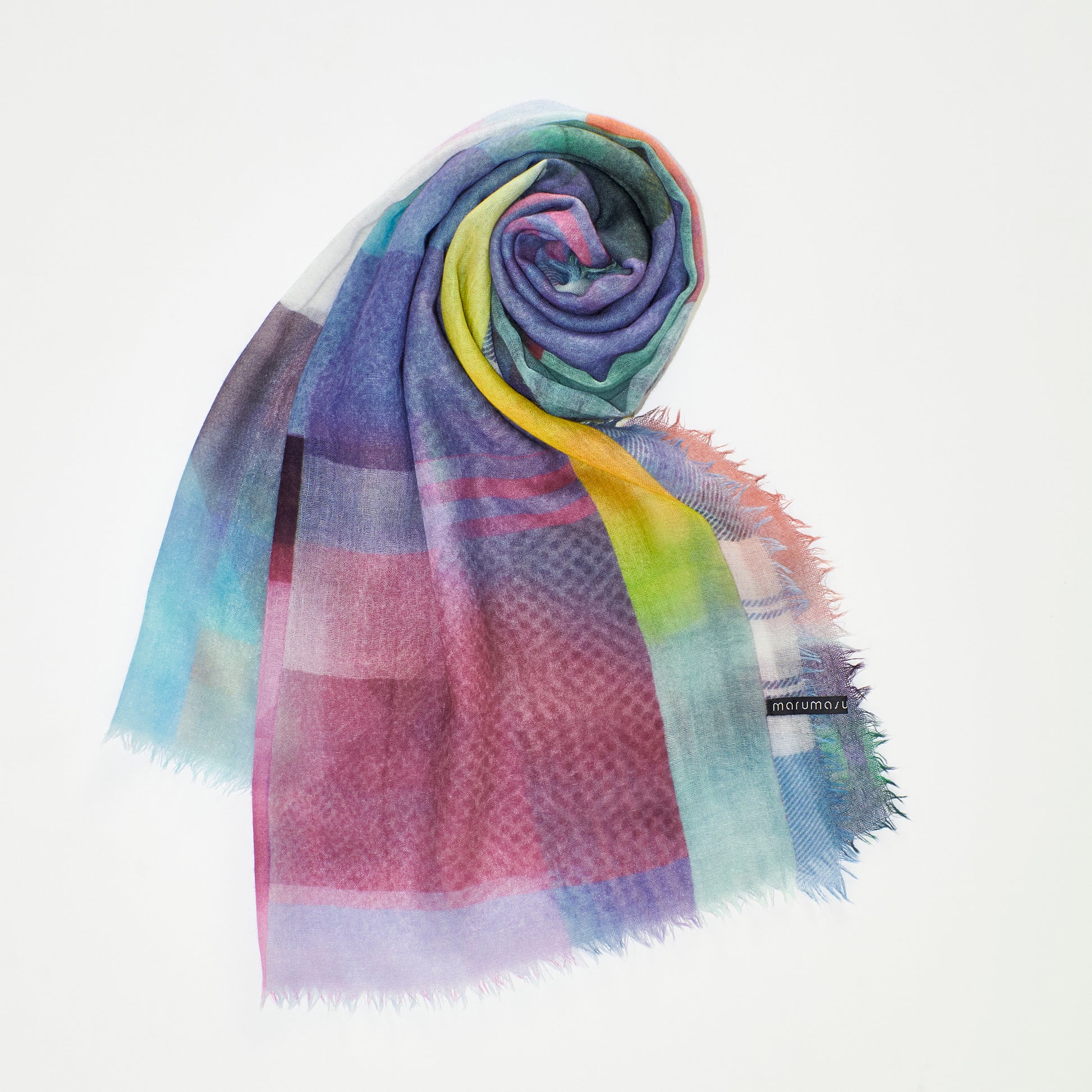 加工では滲みやすく沈みやすいカシミヤの素材に、敢えて綺麗な発色の色彩を目指しました。