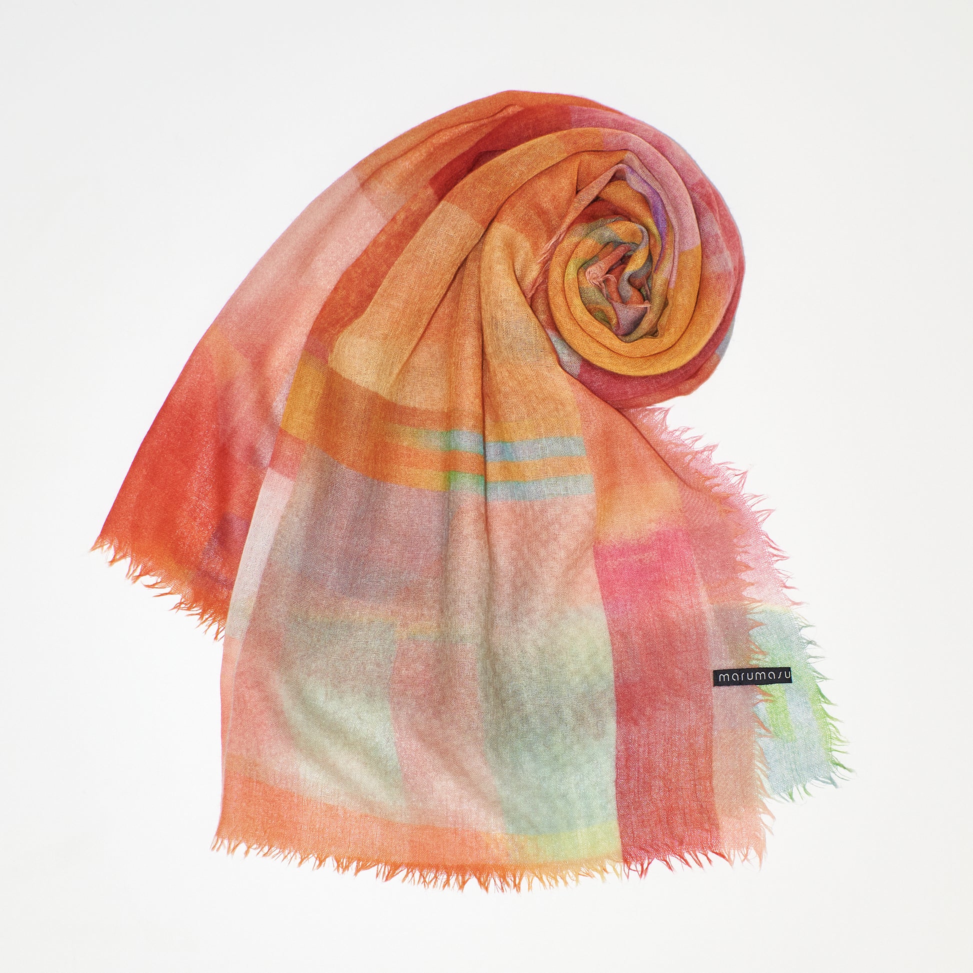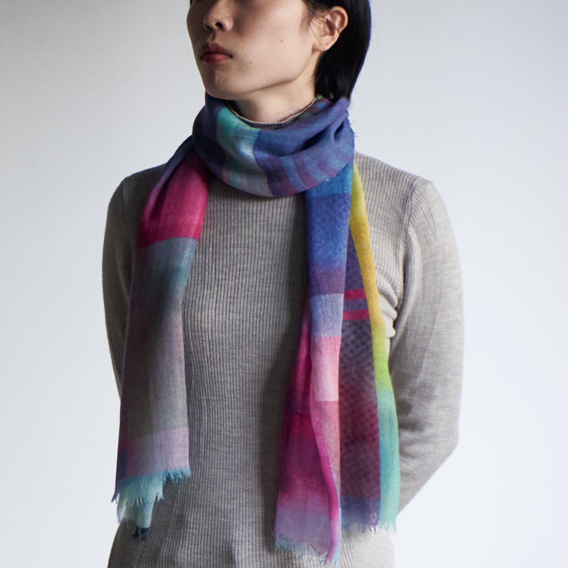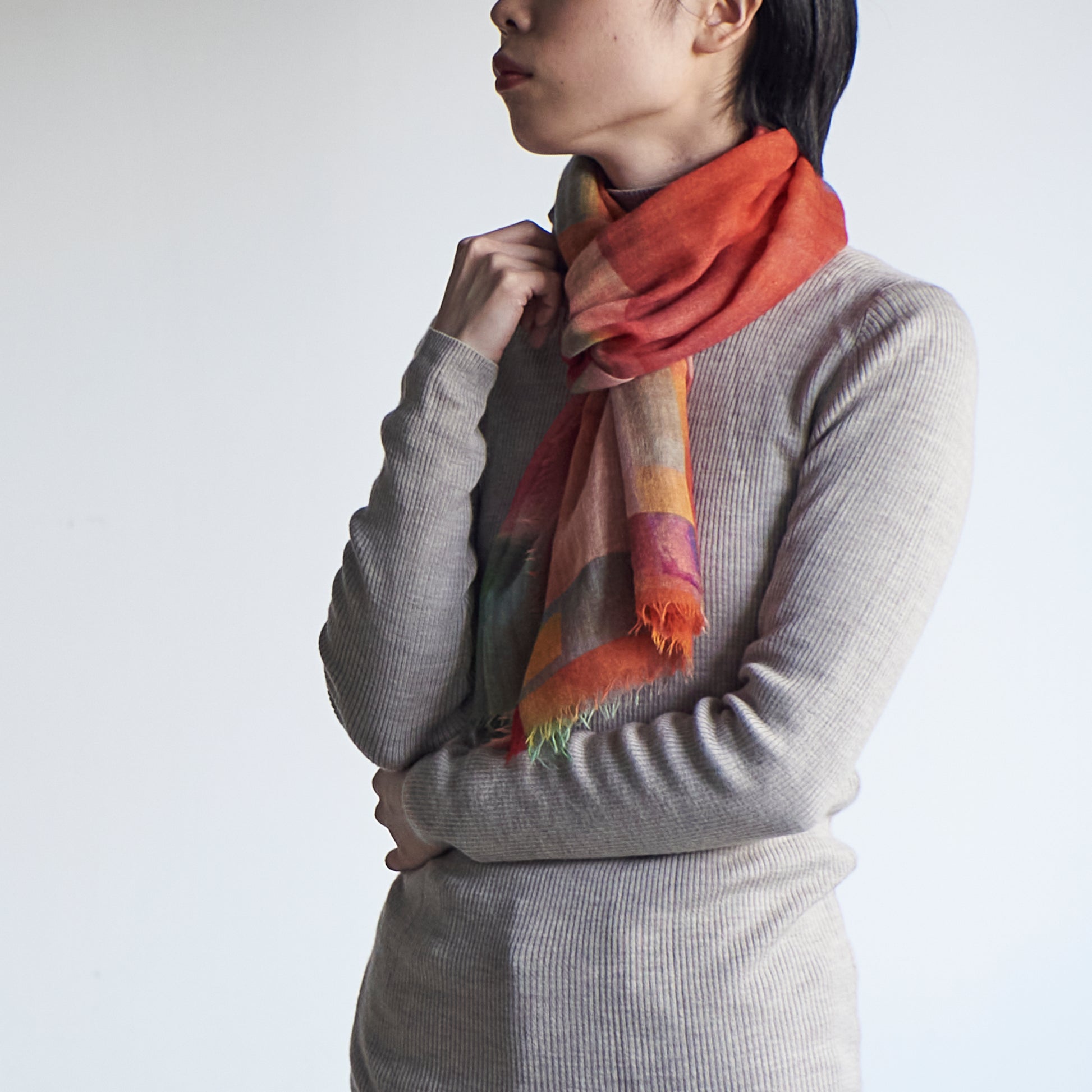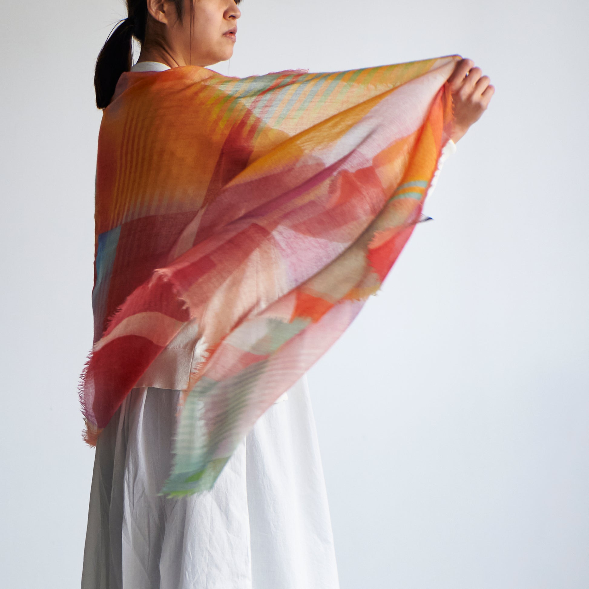 巻くと驚くほど軽く、薄いカシミヤガーゼストール。